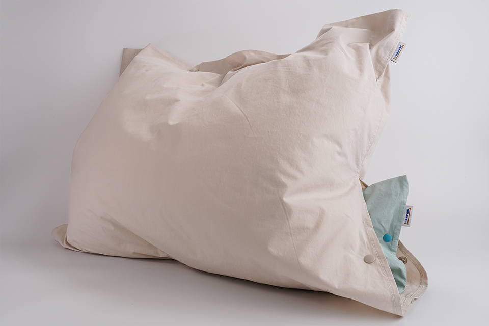 베갯잇 한쪽면에 설치된 단추를 통해 베개의 바닥면을 확인할 수 있습니다.