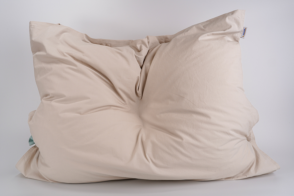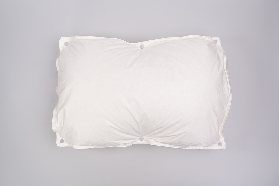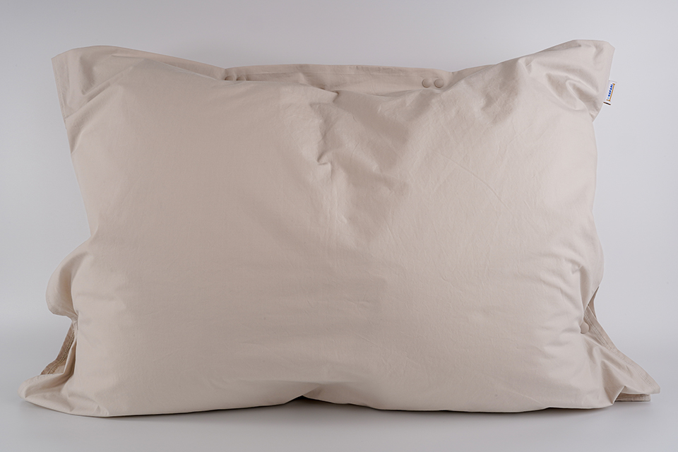 베갯잇 한쪽면에 설치된 단추를 통해 베개의 바닥면을 확인할 수 있습니다.
