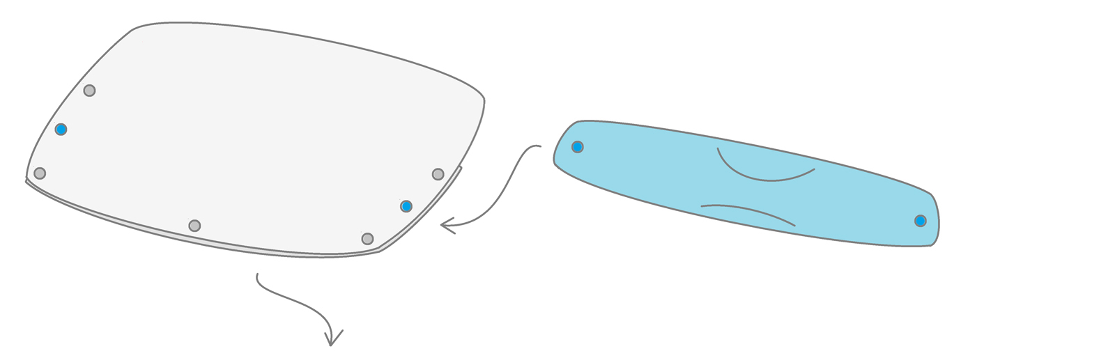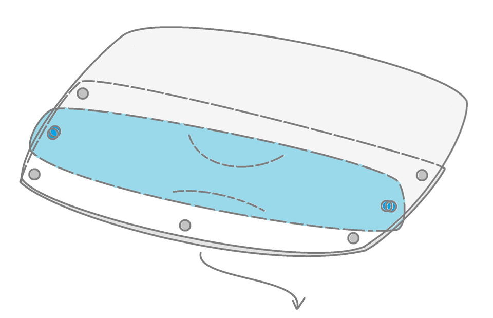 상하판이 통합되어 있으며 하판 중앙에는 머리가 낮게 놓이는 'button pit'이 설치되어 있습니다.